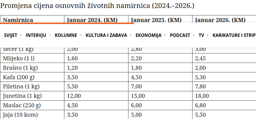 Ono što ste mogli kupiti za 100 maraka u siječnju 2024., godinu dana kasnije zahtijevalo je više novca, a početkom 2026. potrebno je izdvojiti još više.