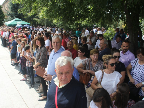 Svečana sveta misa služena je u samostanskom dvorištu, a predvodio ju je fra Petar Klapež, gvardijan franjevačkog samostana u Sinju. Misno slavlje svojim pjevanjem uzveličao je zbor župe Rama Šćit.